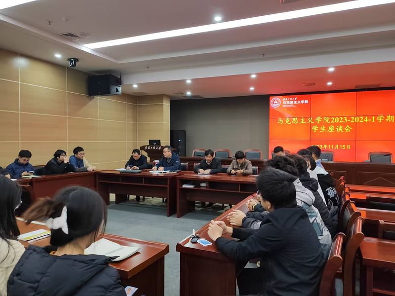 学生座谈会是思政课质量监控的一个重要平台,旨在通过沟通思想和提出意见建议来解决教学存在的实际问题,增强教师教育教学能力。 一直以来,马克思主义学院高度重视学生意见与建议,通过多种途径倾听学生心声、回应学生关切、努力推动学院思政课教学工作改进,更好发挥思想政治理论课立德树人的关键作用。